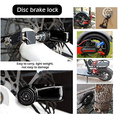 Breed toepassingsgebied: dit elektrische scooterslot is geschikt voor de meeste elektrische scooters en fietsen. De diameter van de slotkern van 5 mm past op de meeste schijfremmen.