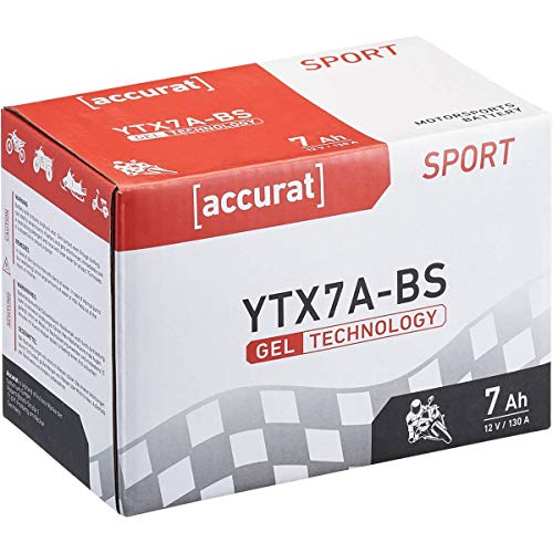 Specification: Accurat motorfietsaccu YTX7A-BS 7 Ah 130 A 12V gel-technologie startaccu in OEM-kwaliteit cyclusvast veilig opbergbaar…
