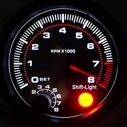 Specification: YUXIwang Toerenteller 3.75 “95mm Toerenteller RPM Gauge Wit Geleid met Interne Shift Licht Zwart Geval